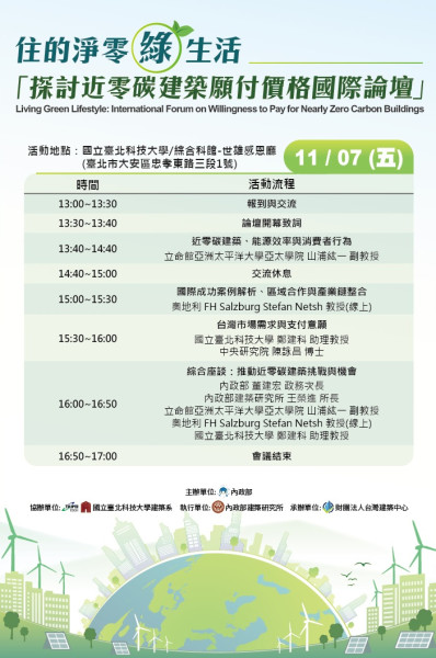 轉知訊息內政部|11月7日【住的淨零綠生活:探討近零碳建築願付價格國際論壇】